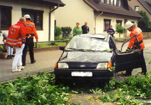 Einsatz "Baum stürzt auf fahrenden PKW" in Sudweyhe (28.05.2000)