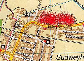 Folgende Karte des Ortes zeigt das Ausmaß des Brandes anhand des heutigen Ortsplans: