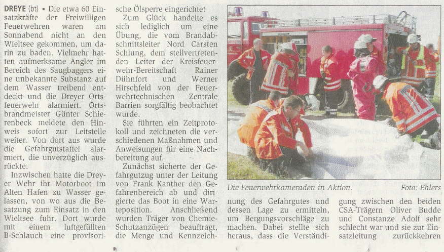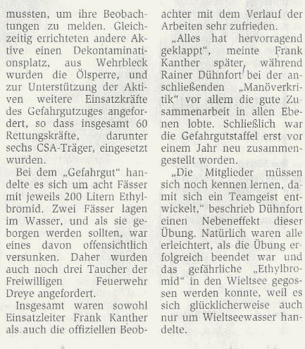Die Kreiszeitung schrieb in ihrer Ausgabe vom 03.07.2006 zu dieser Übung: