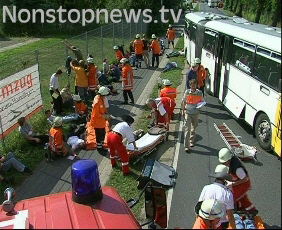Golf zusammengestoßen, jede Menge Busfahrgäste sowie die Autoinsassen sind