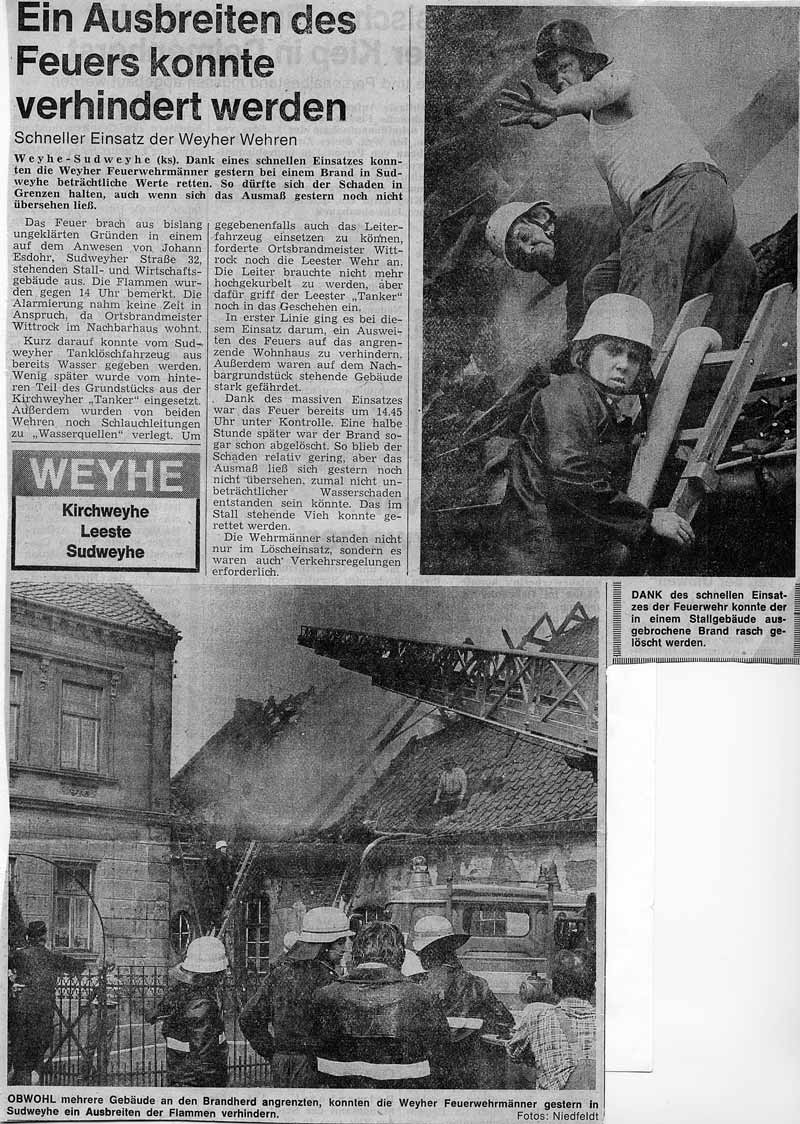 Brand des landwirtschaftlichen Anwesens Esdohr (Sudweyhe) am 20. Mai 1976