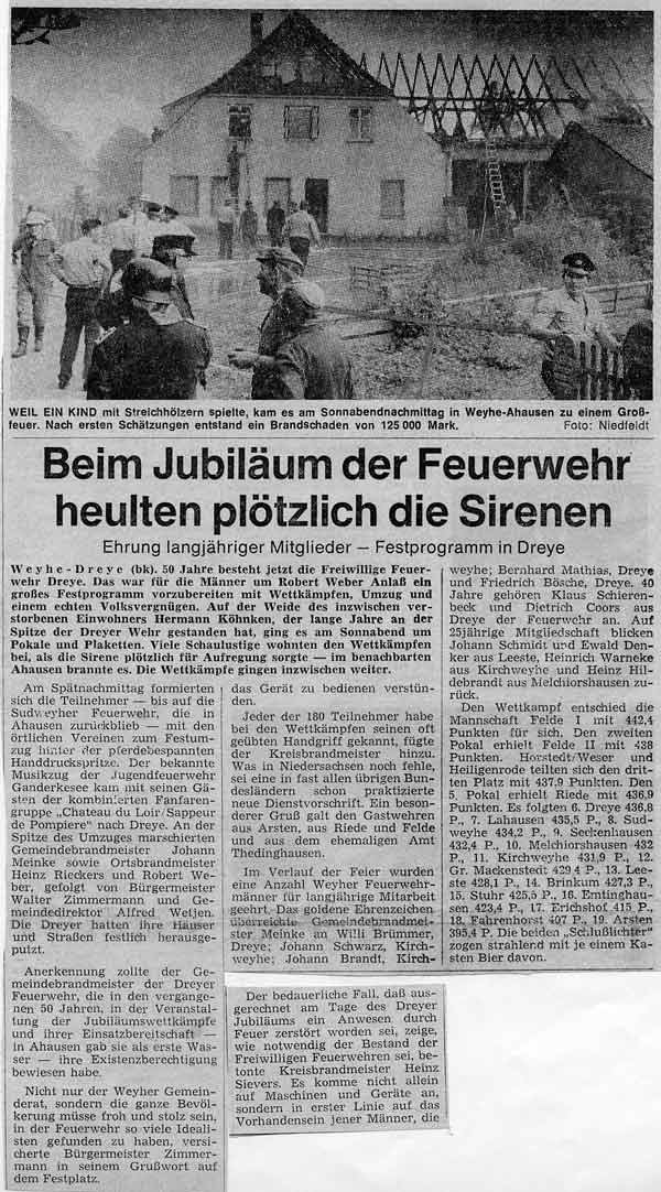 Brand des landwirtschaftlichen Anwesens Hillmann (Ahausen) am 26. August 1974