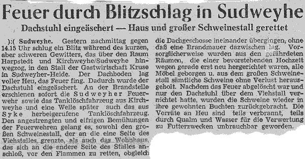 Brand der Gastwirtschaft Kruse (Sudweyhe) am 23. Juli 1956